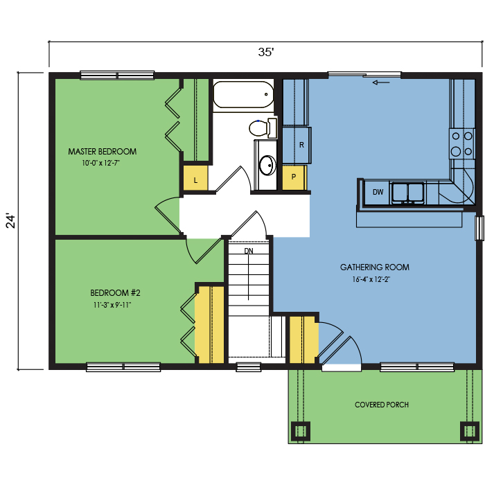 A part of our Dream Series, the Chestnut floor plan features 2 bedrooms and 1 bathroom with a footprint of 35x24 feet and 840 total square feet of living space. Floor Plan #DR103