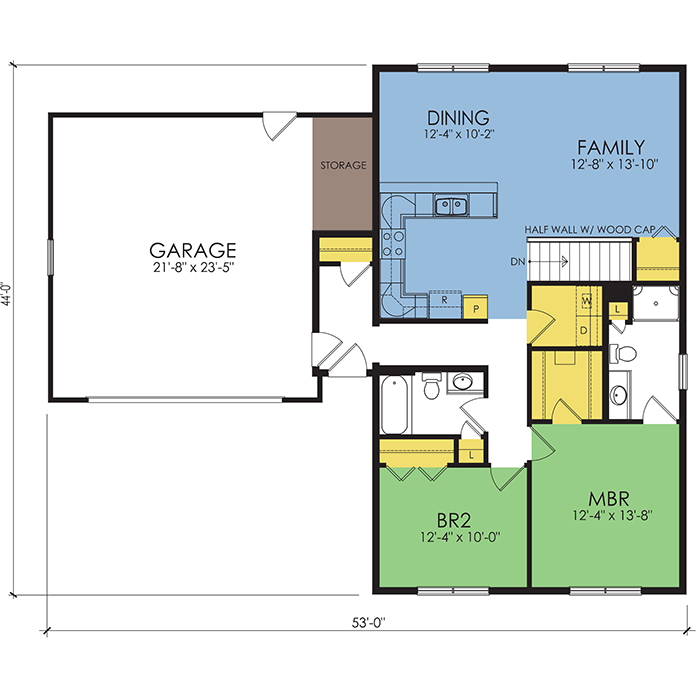 A part of our Wausau Originals, the Danville floor plan features 2 bedrooms and 2 bathrooms with a foot print of 53x44 feet and 1204 total square feet of living space. Floor Plan #WO200