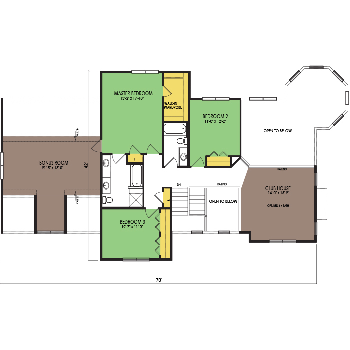 A part of our vacation series, the red rock floor plan features 3 bedrooms and 2.5 bathrooms with a foot print of 78x43 feet and 3409 total square feet of living space. Floor Plan #VC270